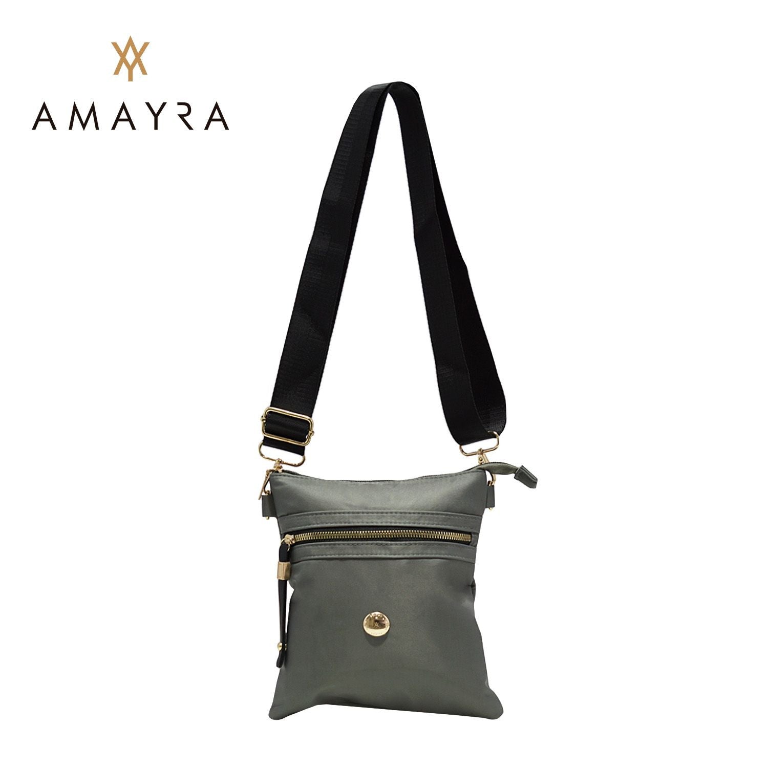 Bandolera con un compartimento principal, un bolsillo delantero con cierre, un bolsillo trasero con cierre y un bolsillo interior. Correa desmontable.