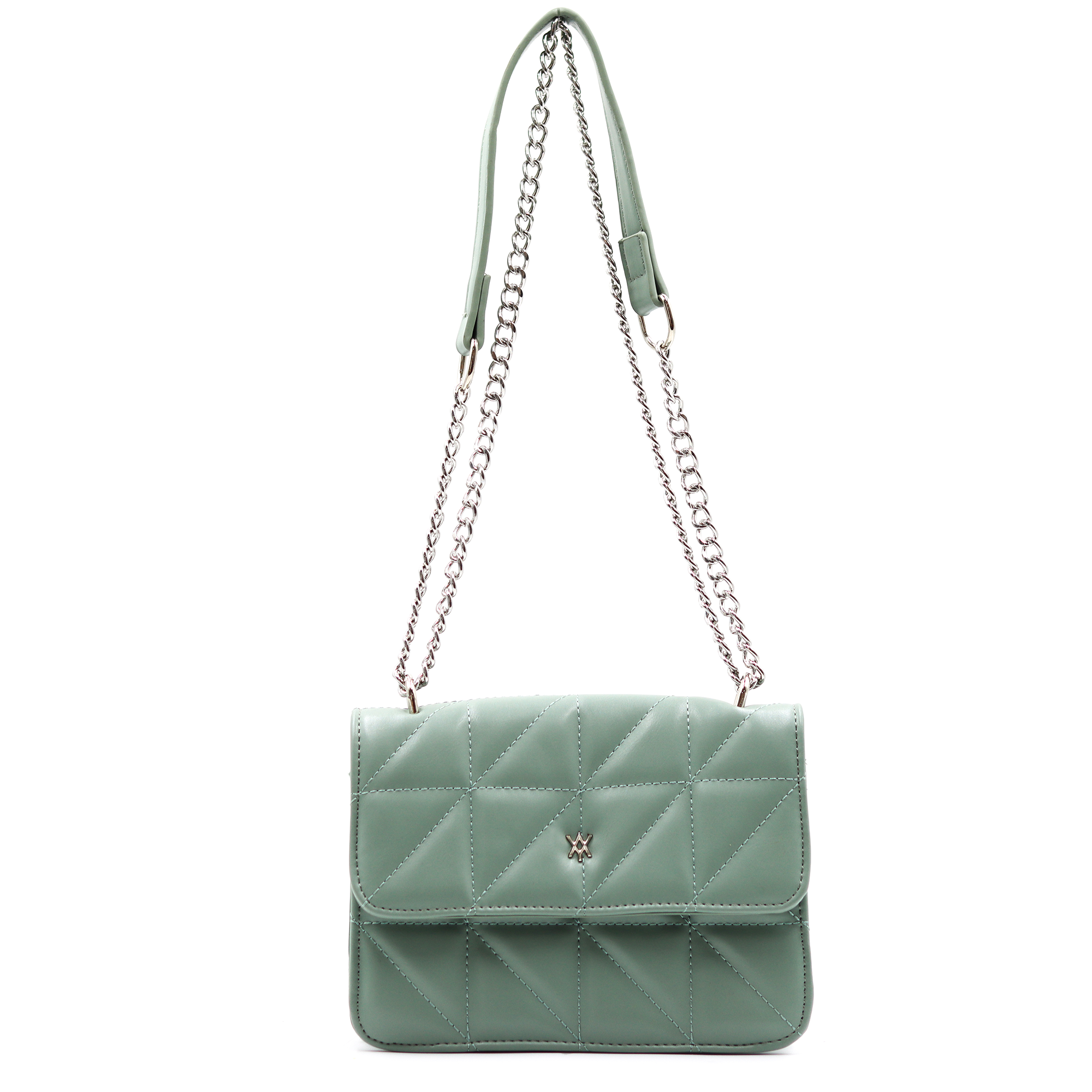 Bandolera con dos compartimentos interiores, un bolsillo interior con cierre, y solapa con broche. Correa estilo cadena.
