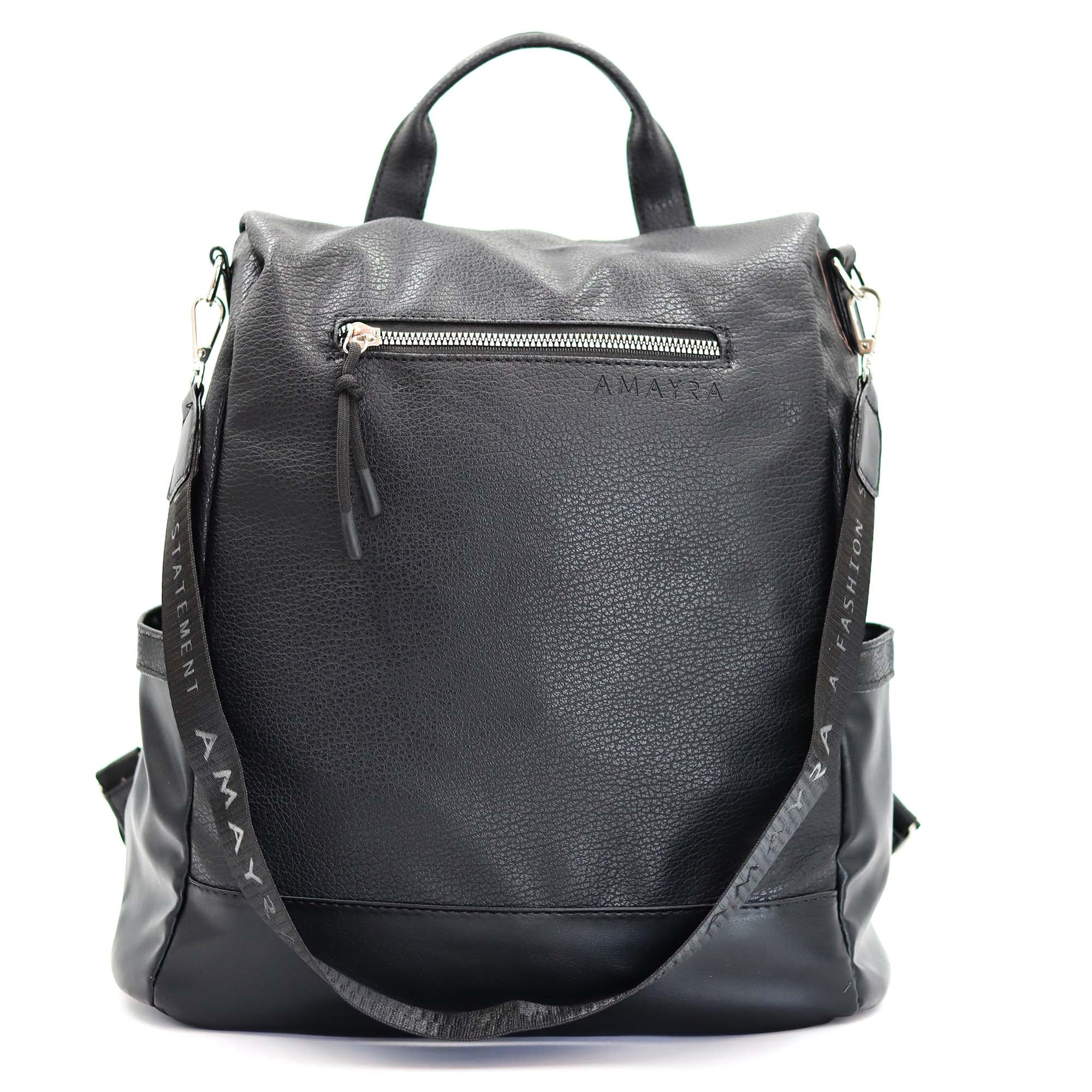 Mochila tamaño M con un compartimento principal con cierre en la parte trasera, dos bolsillos interiores, un bolsillo con cierre en la parte delantera y dos bolsillos laterales. Mochila antirobo. Correas ajustables, se puede usar como mochila o cartera.
